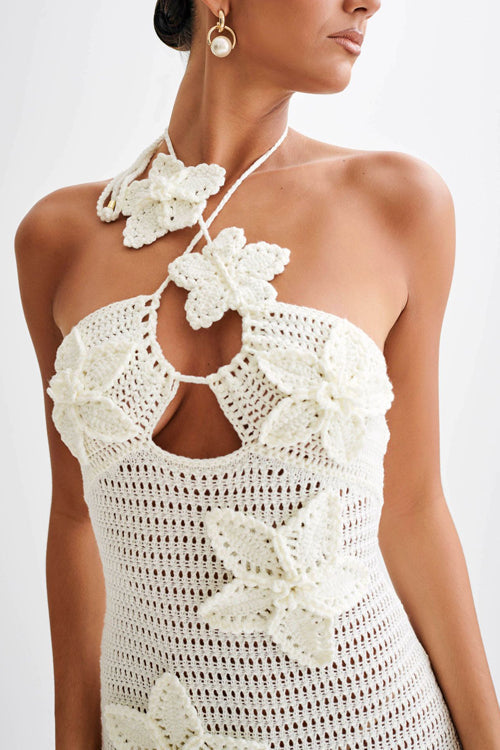 Nothing pairs better with warm rays than this pierced crochet Absolute Edge Knitted Maxi Dress! Paired with a cute halter neckline, perfect for showcasing your favorite necklaces. A eye-catching flower decorations of the figure-skimming silhouette as it falls to a chic maxi hem. Slip into this dress and take a leisurely walk through the palms!