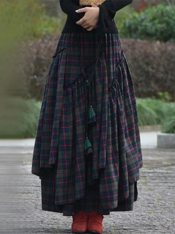 Stand out with the Women's Irregular Stitching Large Hem Long Skirt. This unique piece features bold, irregular stitching that adds an artistic touch to its flowing design. Perfect for those who appreciate both style and comfort, this skirt effortlessly blends contemporary fashion with classic elements.