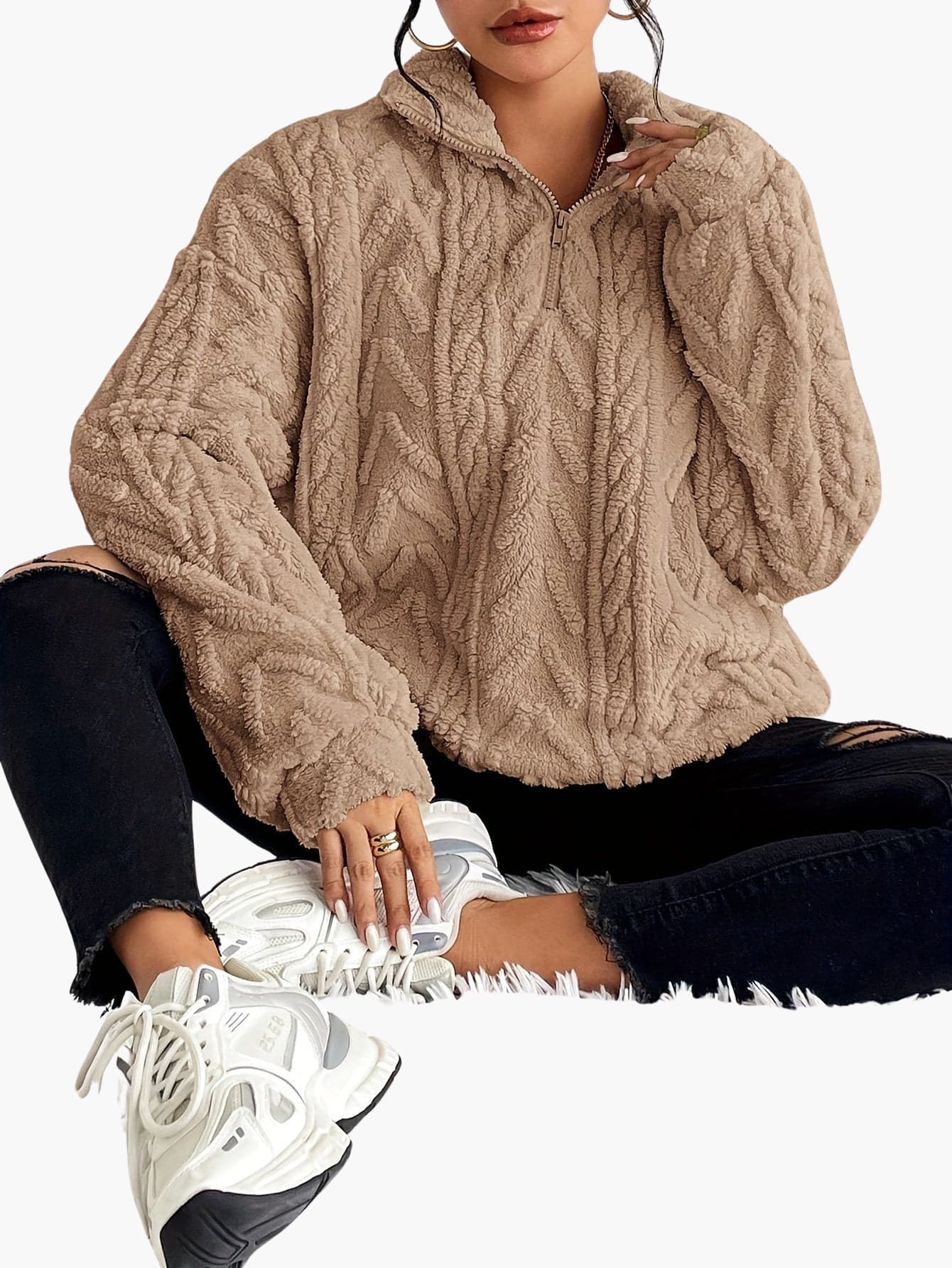 Zara | Luxe Cable-Knit Fleece Sweatshirt