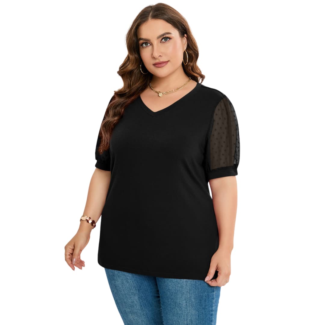 Aisha | Sheer Sleeve V-Neck Top