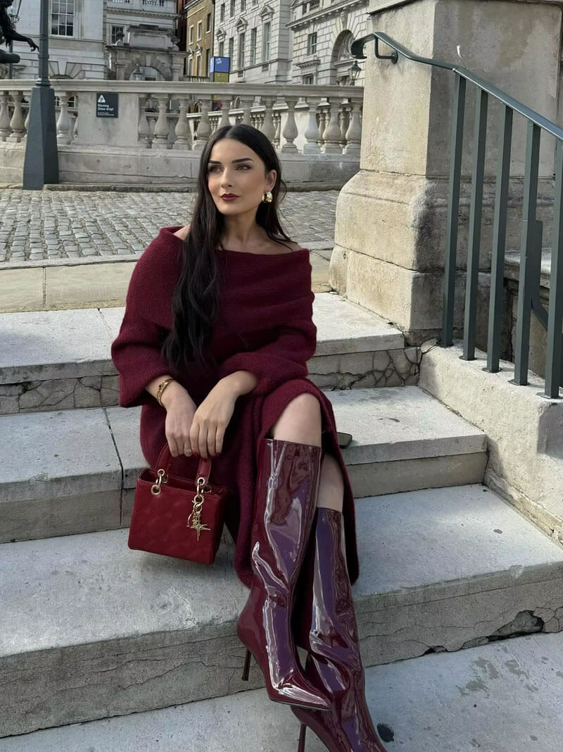 Introducing our Calista Knitted Maxi Dress, crafted from cotton for an effortless blend of style and function. This maxi dress features a pullover design, making it perfect for a high street look. With an autumn and winter aesthetic, it seamlessly complements your look, whether you're strolling through the city or enjoying casual outings. Elevate your collection with this essential piece this season.