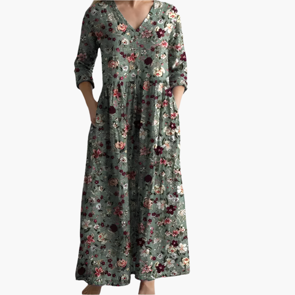 Georgina - Olive Bloom Tummy Coverage Dress