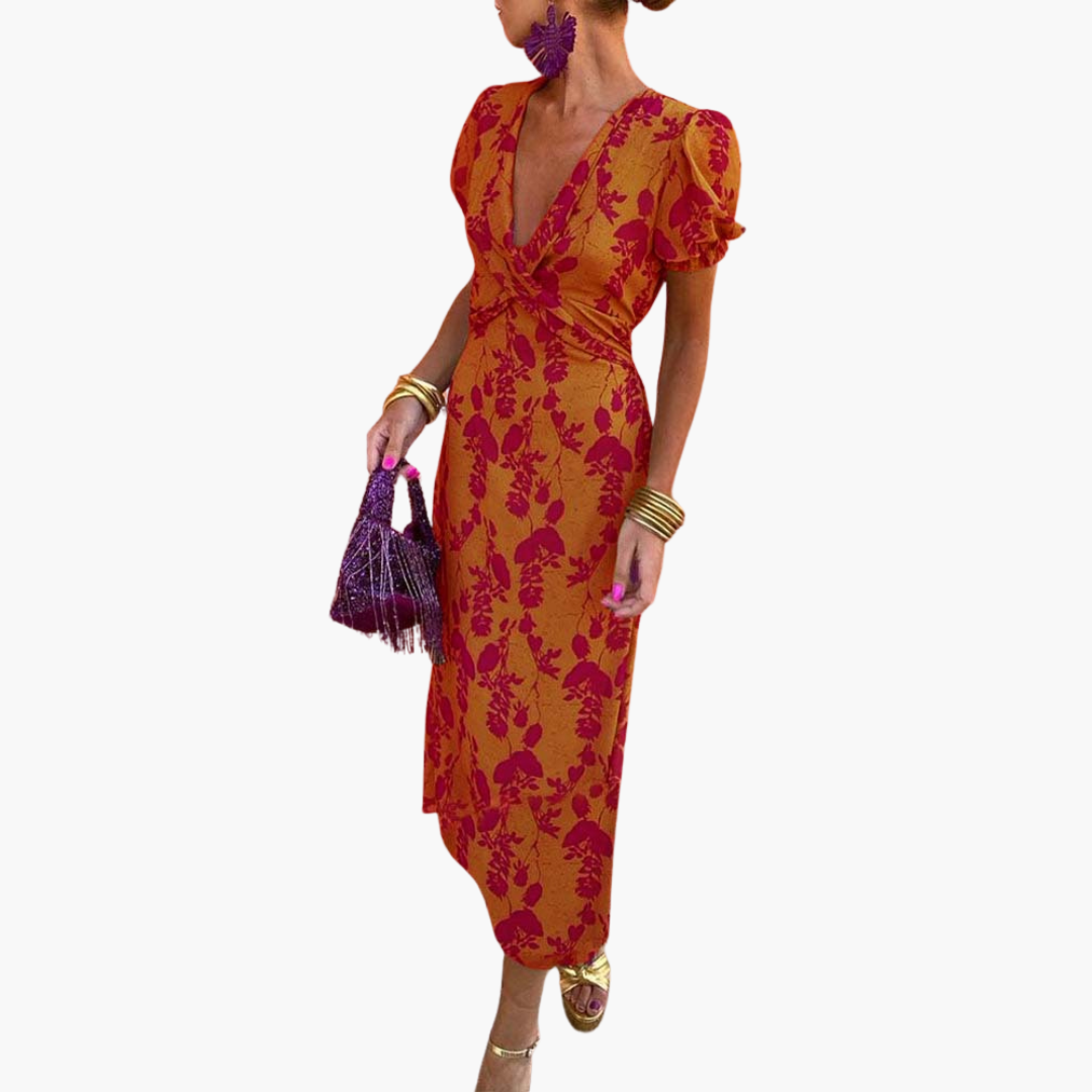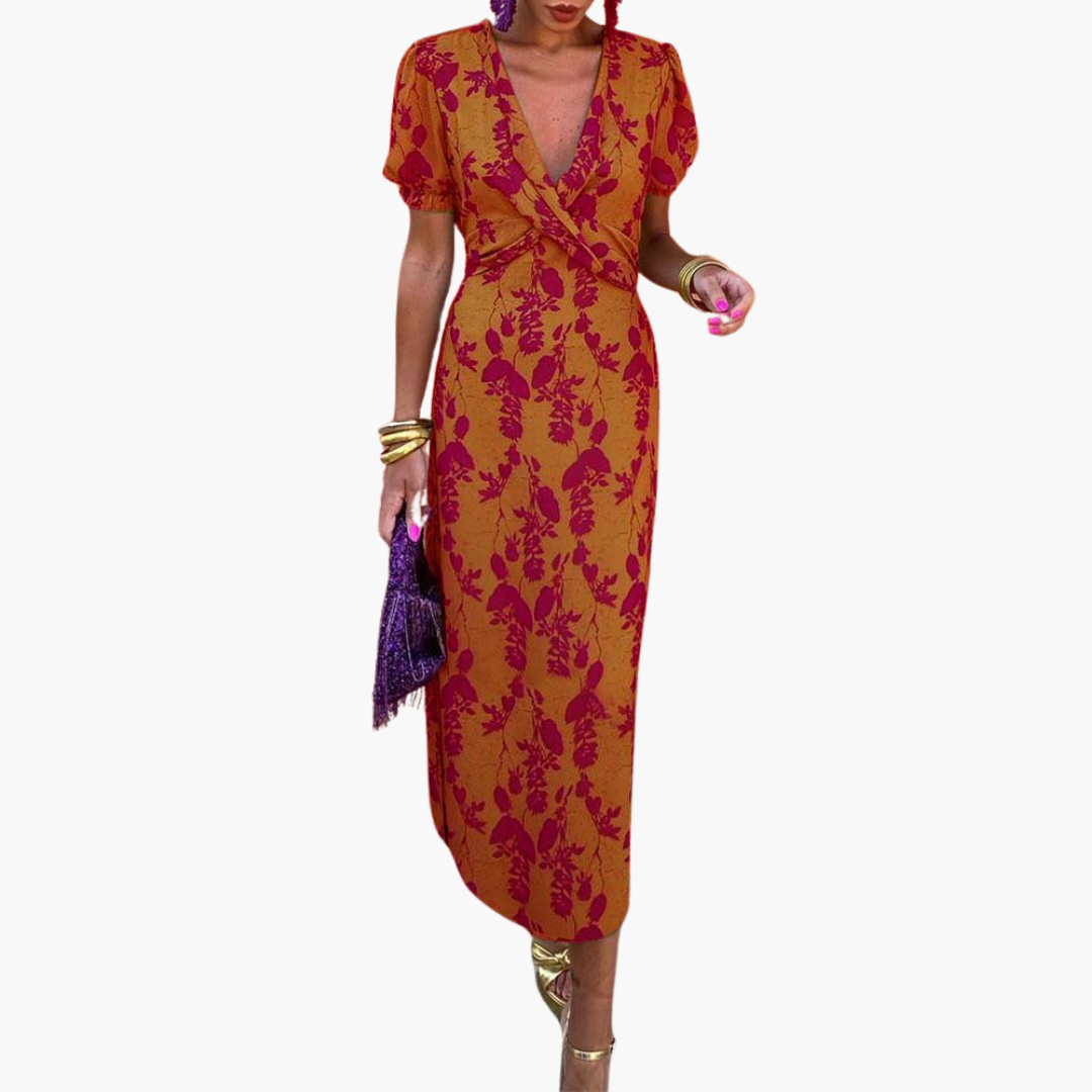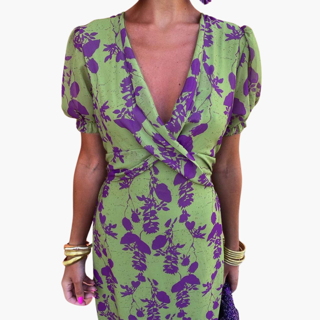 Julia | Elegant Deep V-Neck Dress with Leaf Pattern