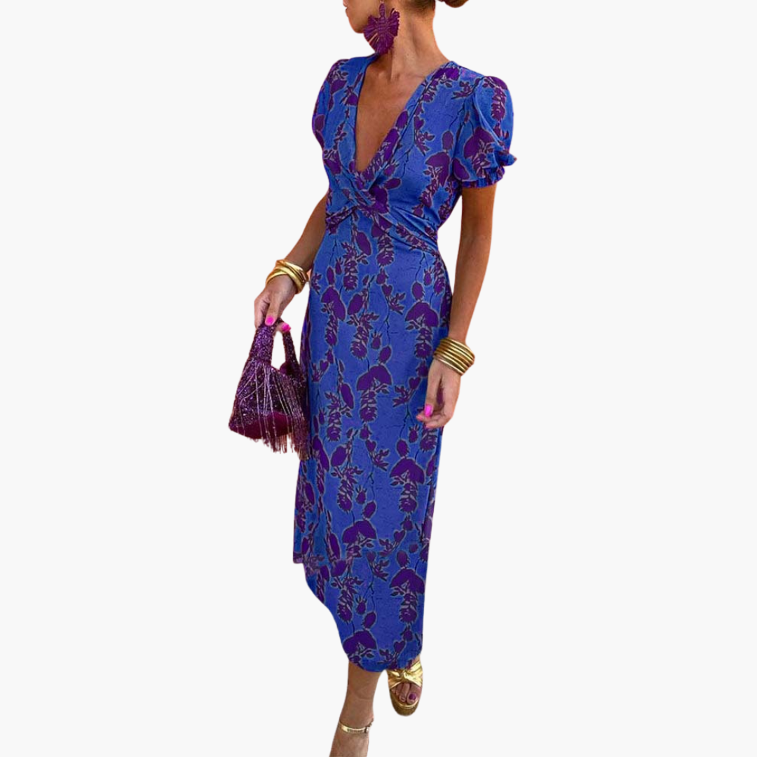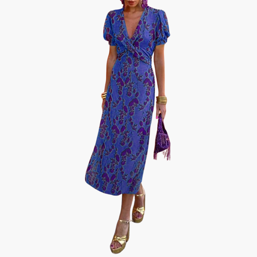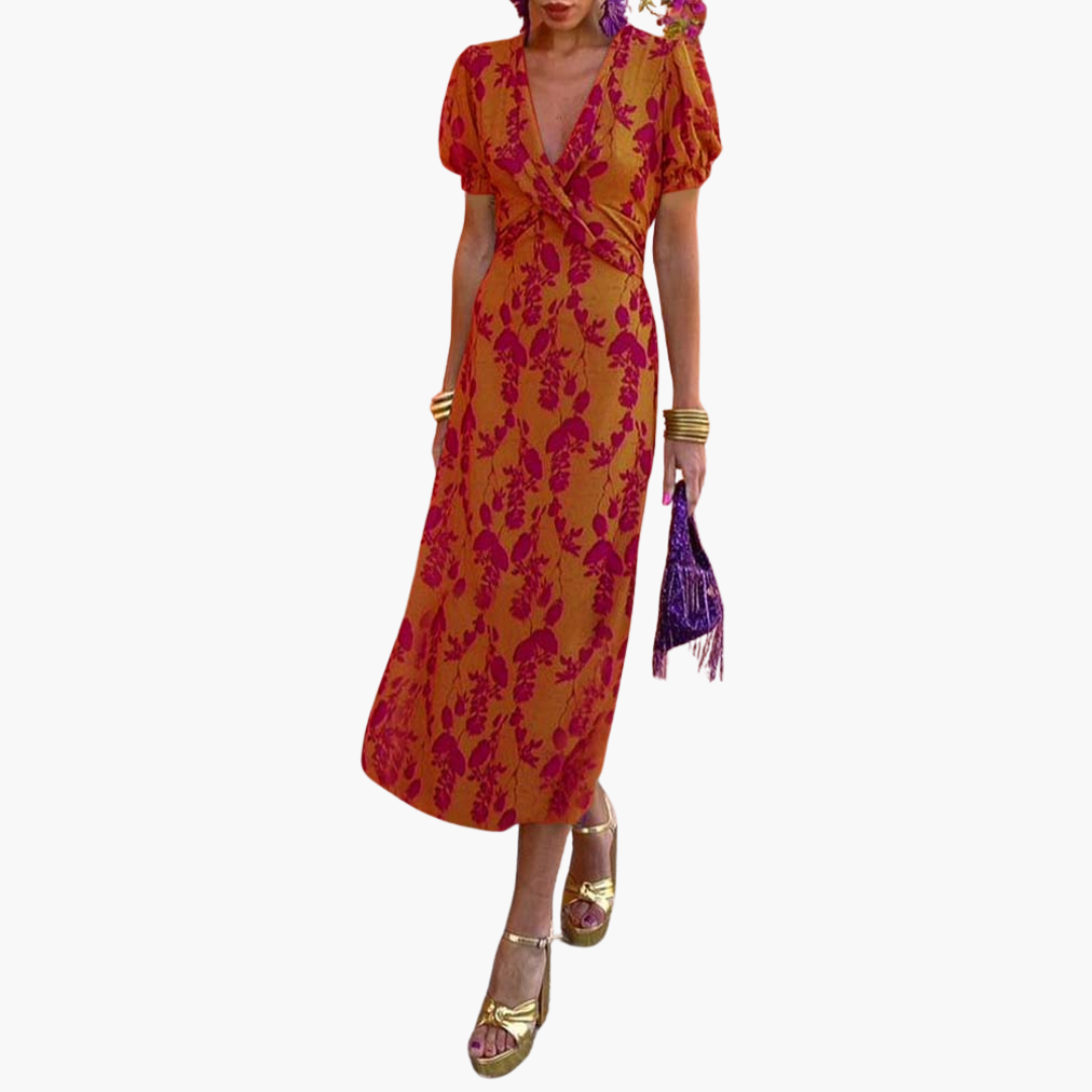 Julia | Elegant Deep V-Neck Dress with Leaf Pattern
