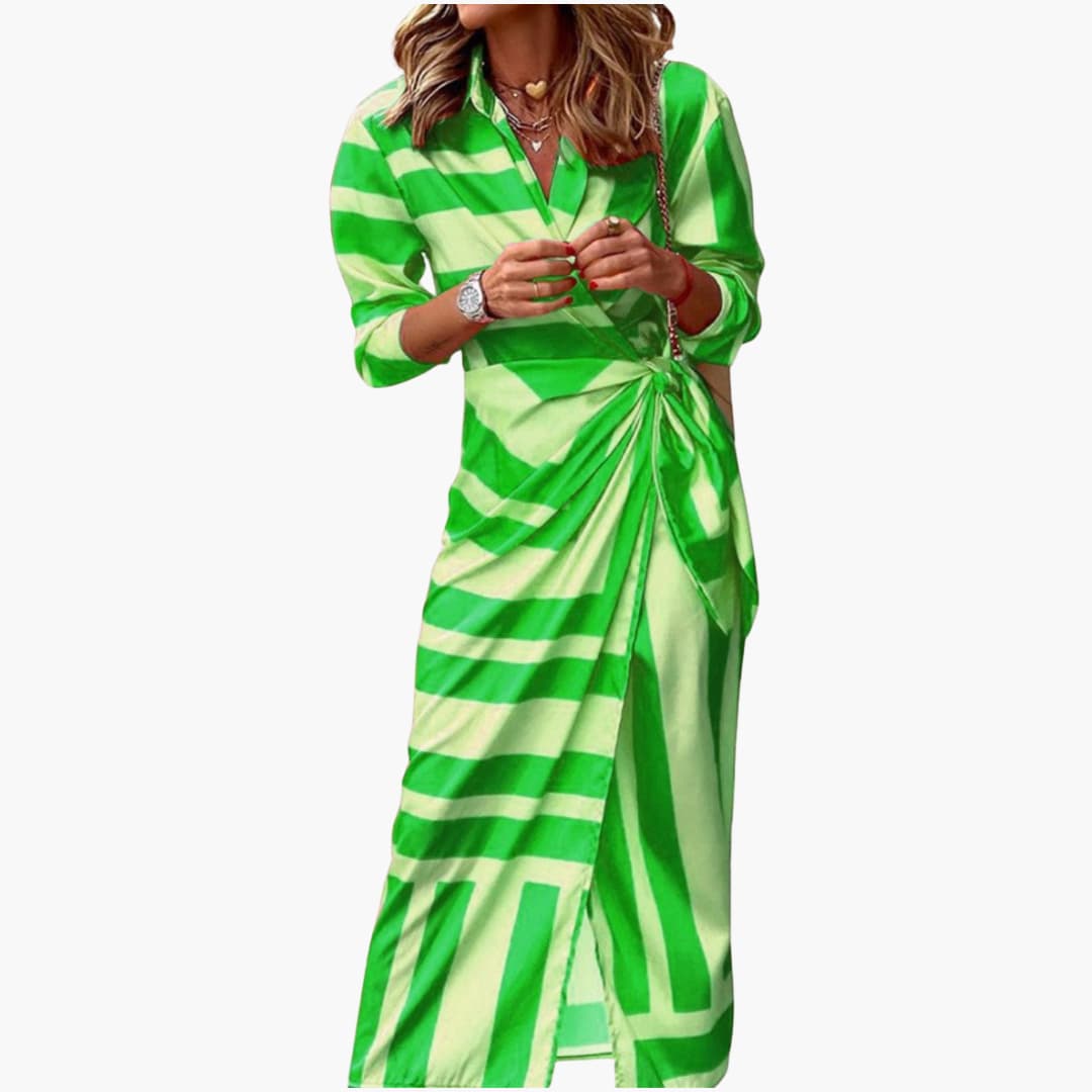 Refresh your wardrobe with our Women's Striped Midi Shirt Dress crafted with a flattering wrap silhouette and a waist tie that enhances your natural shape. The bold stripes lend a contemporary feel, while the breathable fabric ensures all-day comfort. Perfect for relaxed afternoons or more refined occasions, this dress delivers effortless style and confidence. It’s your go-to piece for a seamless transition from brunch to evening plans.