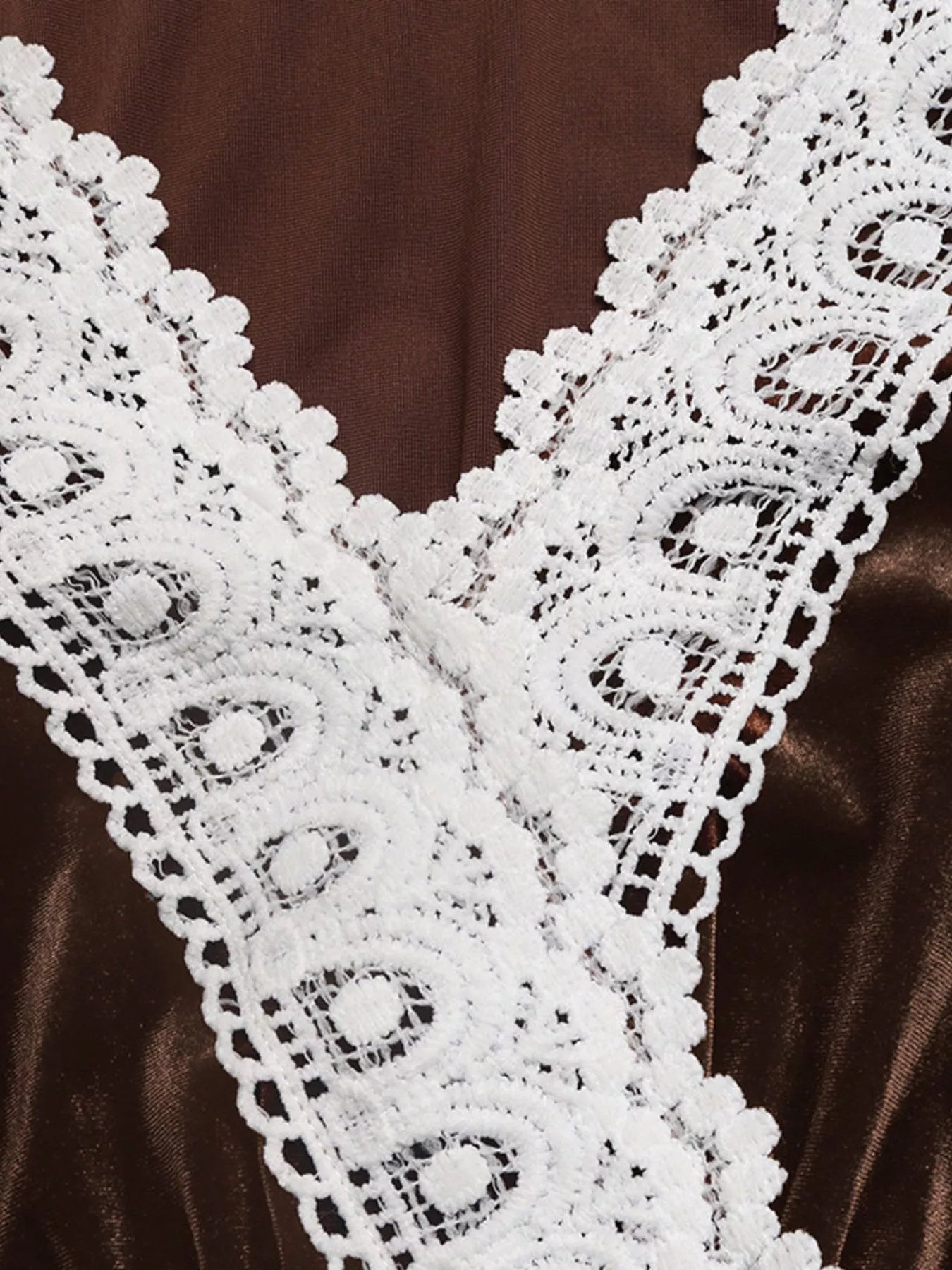 This Velvet A-Line Dress with Lace Trim brings softness and charm to your wardrobe. Its rich velvet fabric feels plush against your skin, while the delicate lace trim adds a flirty, feminine touch. The flattering A-line silhouette effortlessly sways with your every move, making it perfect for playful days or special nights out. Dress it up or down and let your style sparkle with comfort and grace.