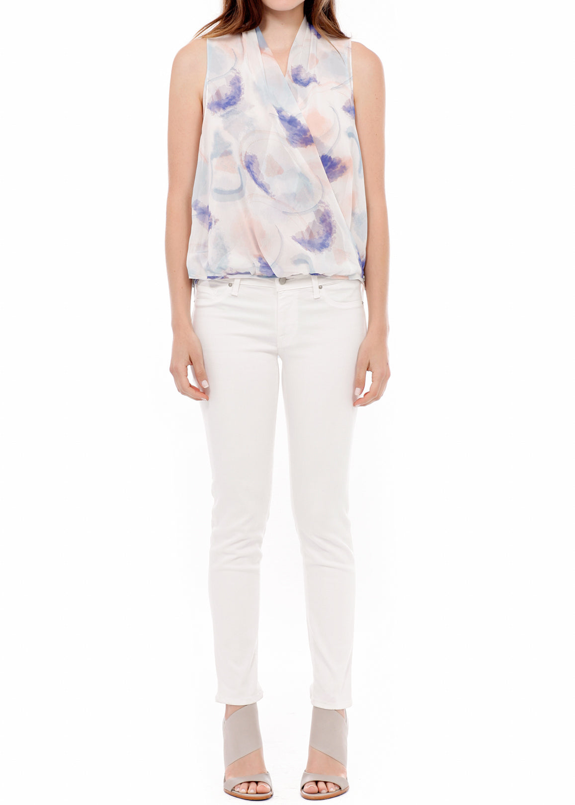 **Product Title: Women's Surplice Sleeveless Blouse In Water Color**
