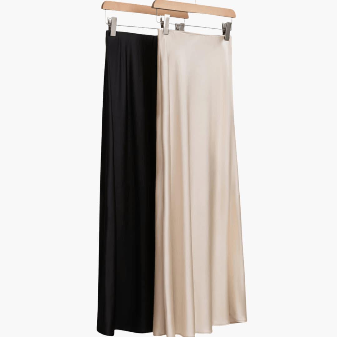 High-Waisted Satin Midi Skirt - Elegant & Versatile for Women